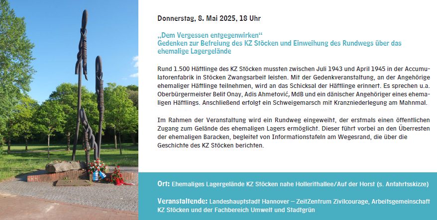 "Dem Vergessen entgegenwirken" Gedenken zur Befreiung des KZ Stöcken und Einweihung des Rundweges über das ehemalige Lagergelände.