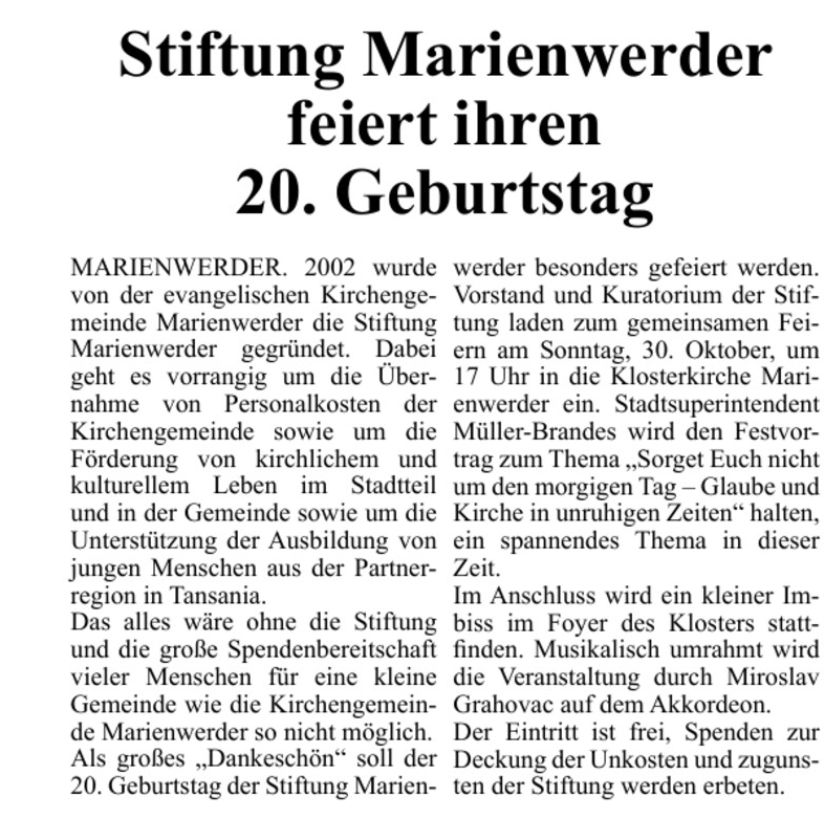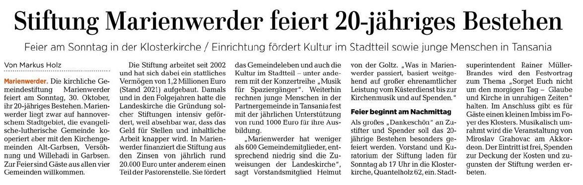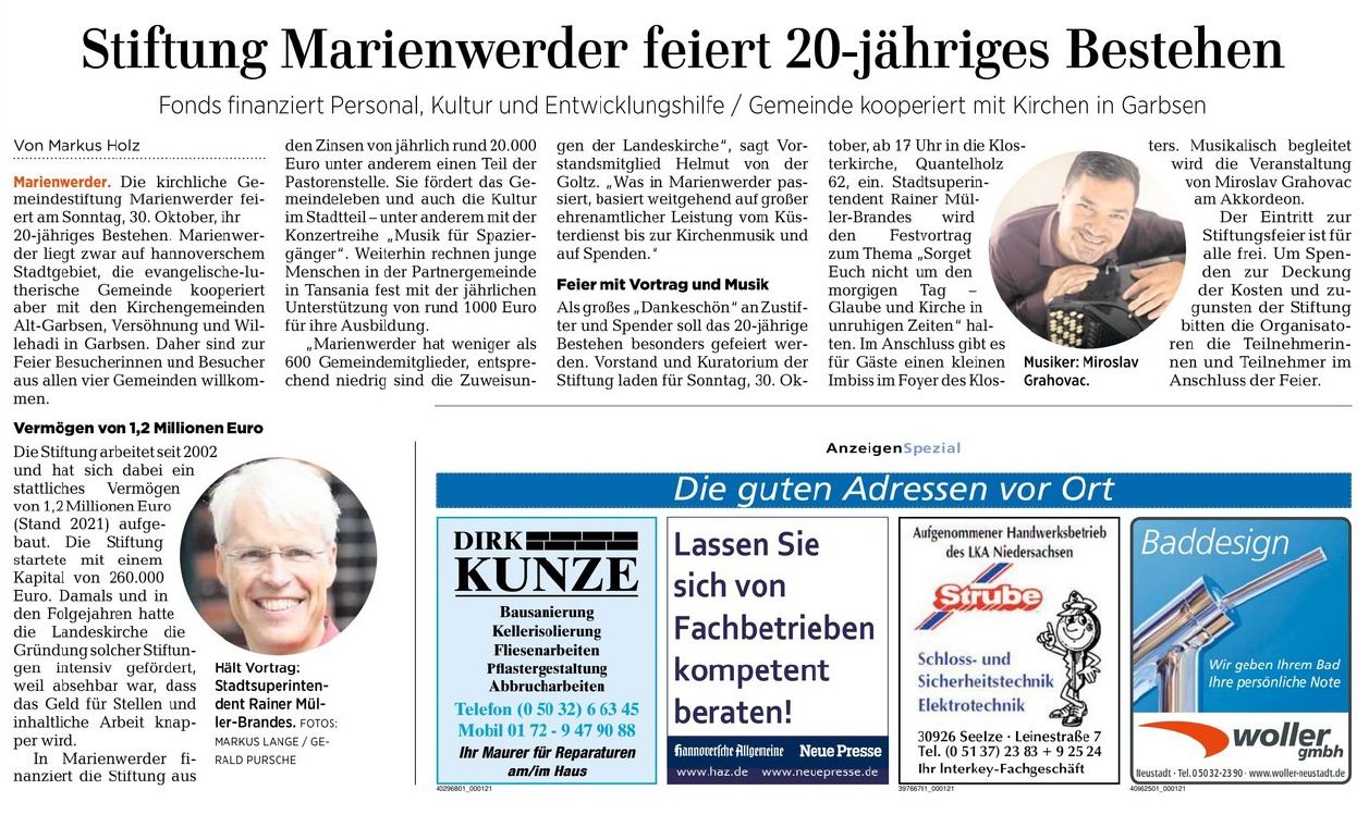 23.08.2025 Umschau Garbsen 12.03.2025 Leine-Zeitung 15.02.2025 Umschau Garbsen 25.05.2023 HAZ Stadtanzeiger Nord 13.05.2023 Umschau Garbsen 29.10.2022 Umschau Garbsen 27.10.2022 HAZ Stadtanzeiger Nord 26.10.2022 Leine-Zeitung 09.09.2021 HAZ Stadtanzeiger Nord 06.09.2021 HAZ Online Teil 1 06.09.2021 HAZ Online Teil 2 06.09.2021 HAZ Online Teil 3 06.09.2021 HAZ Online Teil 4 02.09.2021 HAZ Stadtanzeiger Nord 10.02.2021 Hannoversche Allgemeine T1 10.02.2021 Hannoversche Allgemeine T2 19.11.2019 Umschau Garbsen 21.08.2019 Umschau Garbsen 17.04.2019 Umschau Garbsen 11.04.2019 HAZ Stadtanzeiger Nord 03.04.2019 Umschau Garbsen 31.10.2018 Umschau Garbsen 15.08.2018 Umschau Garbsen Teil 1 15.08.2018 Umschau Garbsen Teil 2 08.05.2018 Leine-Zeitung 07.09.2017 Umschau Garbsen 19.07.2017 Umschau Garbsen 18.10.2016 Leine-Zeitung 31.08.2016 Umschau Garbsen 24.08.2016 Umschau Garbsen 15.07.2016 Umschau Garbsen 15.07.2016 Leine-Zeitung 30.11.1956 Neue Presse