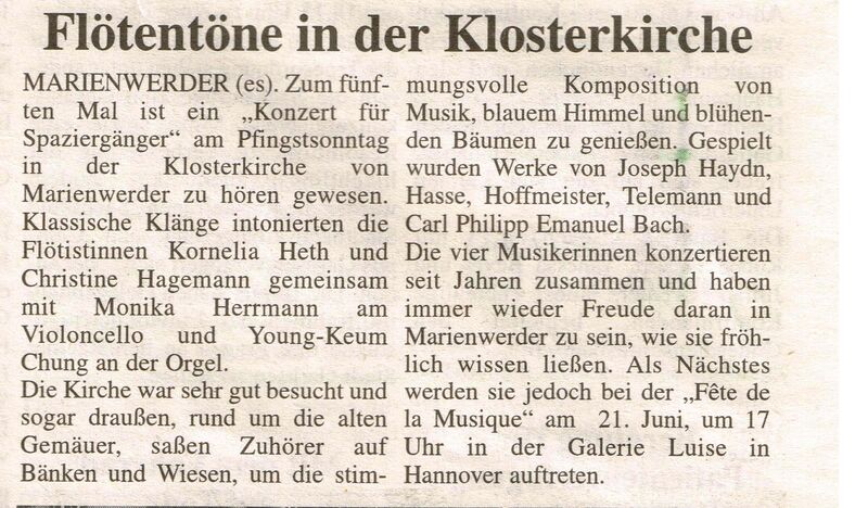 Kornelia Heth, Christine Hagemann (Querflöten), Monika Herrmann (Violoncello) und YYoung-keum Chung (Orgel) - sie musizierten Werke aus Barock und Klassik.